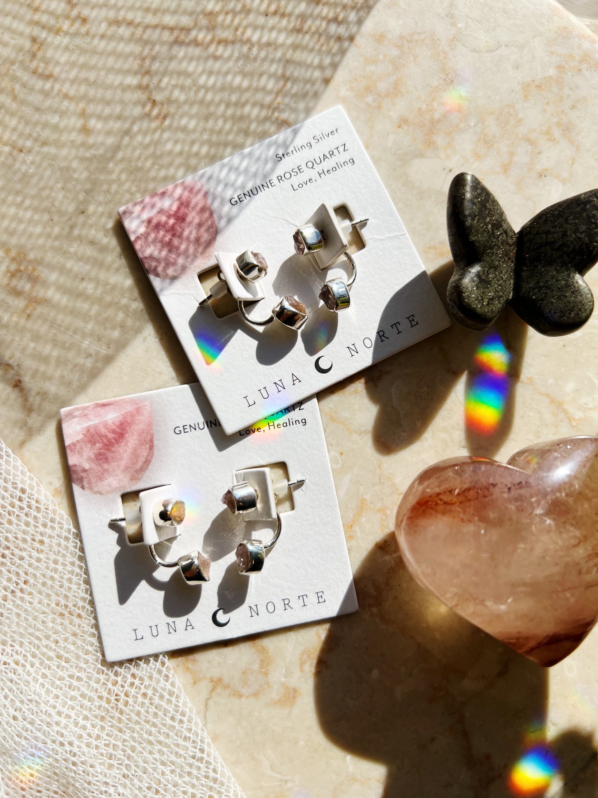 🌸 Double Trouble Øredobber – Rosenkvarts & Sterling Sølv 🌸