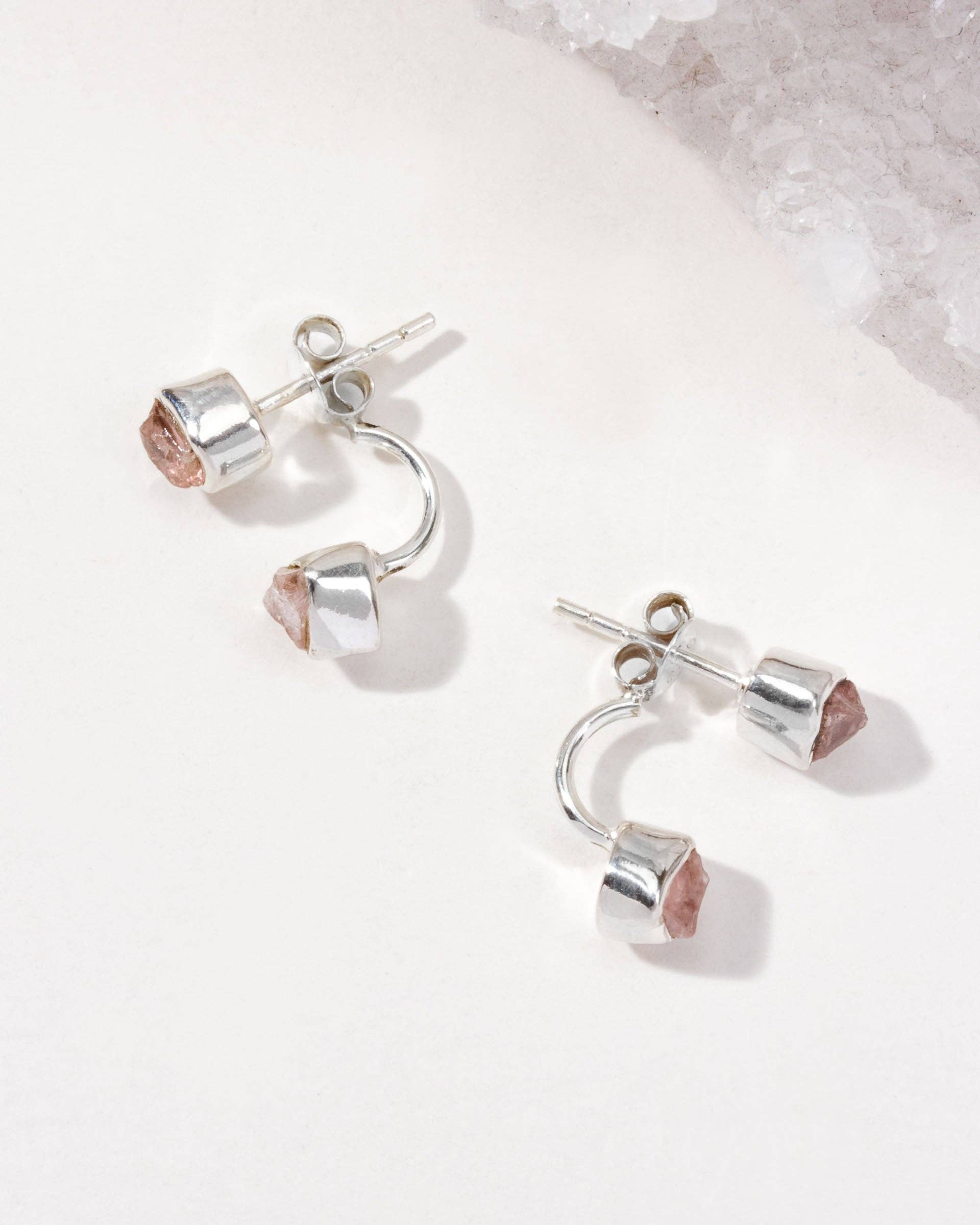 Double Trouble Front Back Øredobber - Rose Quartz