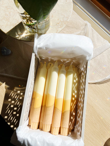 Våre håndlagde lys kombinerer tidløs eleganse med førsteklasses kvalitet, perfekt for å skape en varm og luksuriøs stemning i ethvert rom. 🕯️💫 Et ekte blikkfang som lyser opp hjemmet ditt! Hvert lys er dyppet og dekorert for hånd, noe som gir hvert lys sin egen unike sjarm. 🌸✨