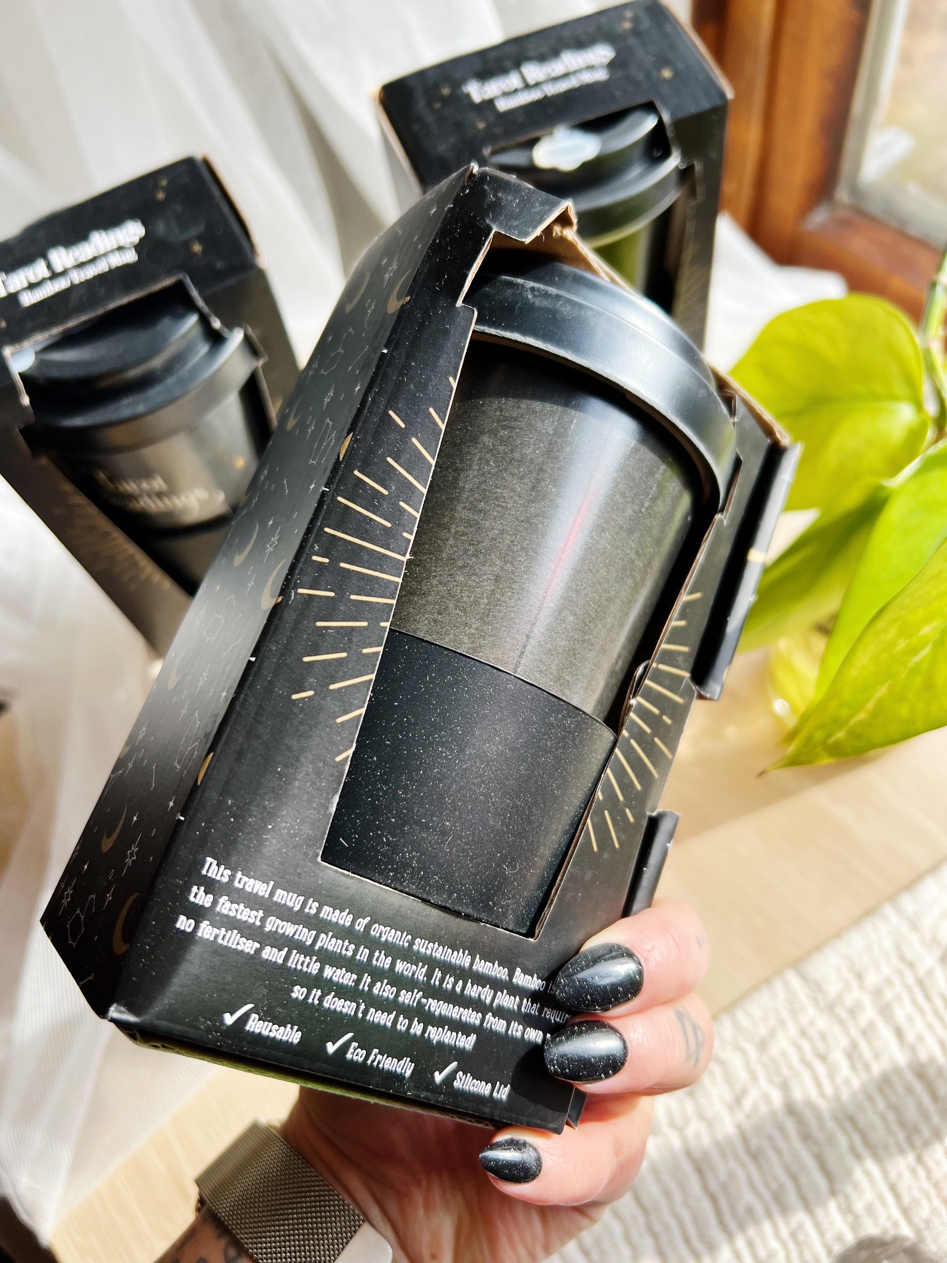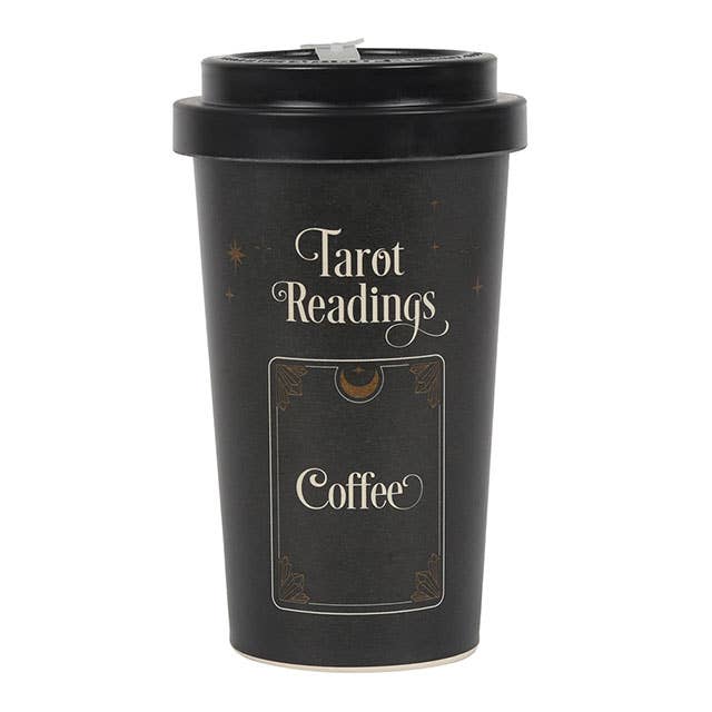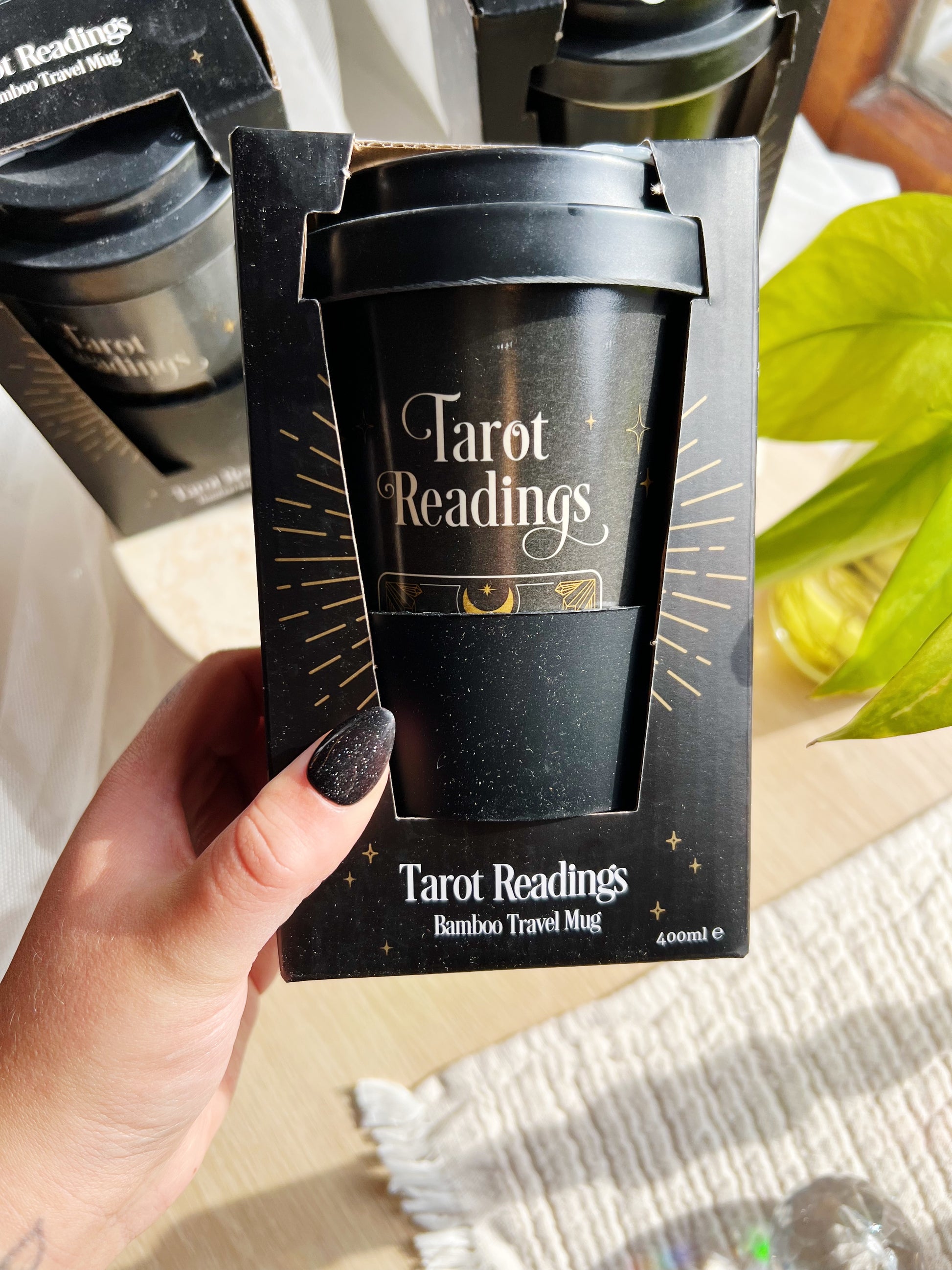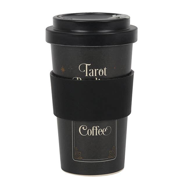 Ta med deg mystikken på farten med denne miljøvennlige og gjenbrukbare reisetermokoppen laget av slitesterk bambusfiber. Med en stilig tarot-kortdesign og teksten «Tarot Readings» er denne koppen perfekt for alle som elsker kaffe og esoterisk estetikk.