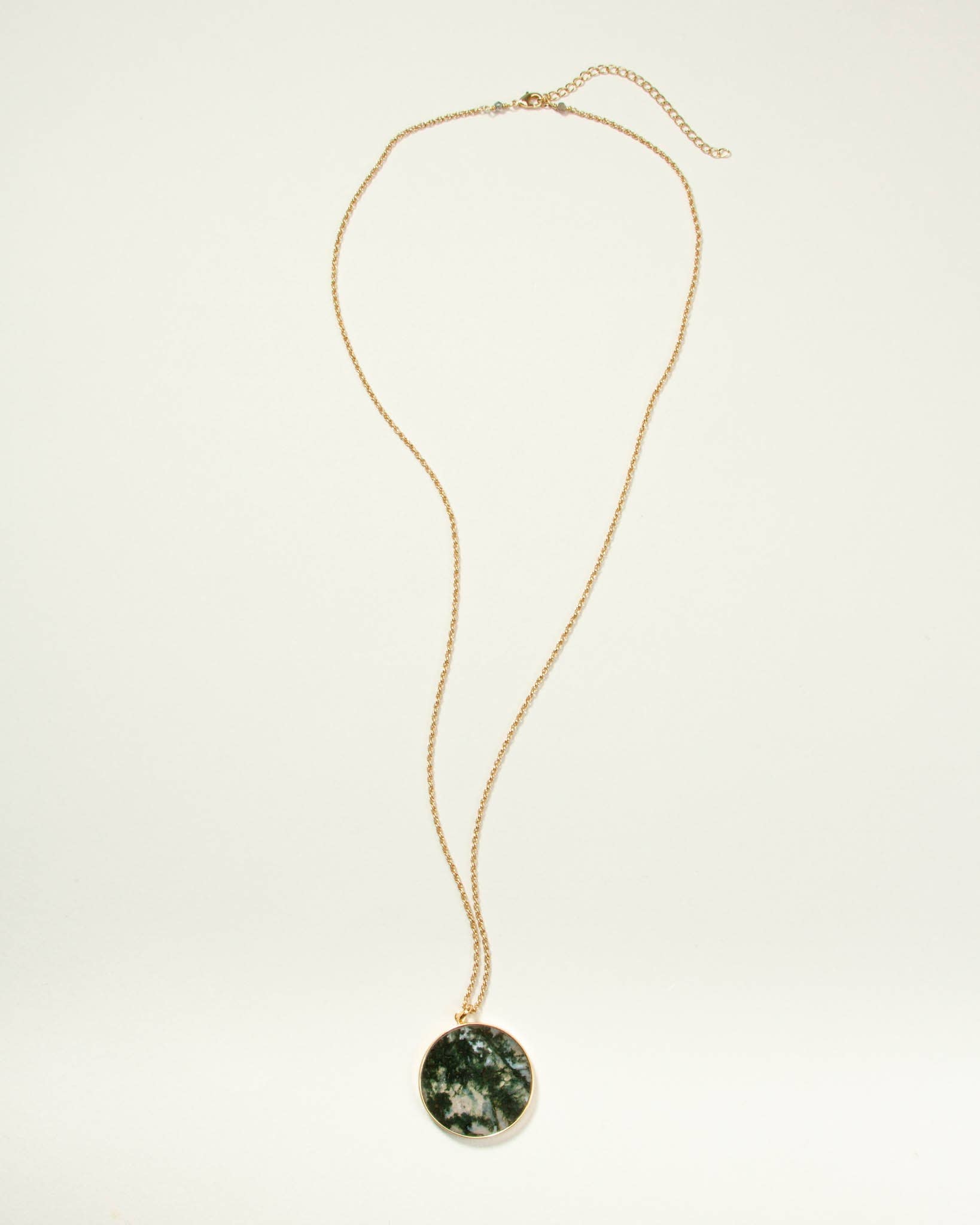 Som duggvått løv fanget i stein – mos agat bærer med seg naturens rolige, jordende kraft. De grønne, mose-lignende innslagene gjør hver medaljong til et lite kunstverk, og gir følelsen av å bære et stykke skog nær hjertet.