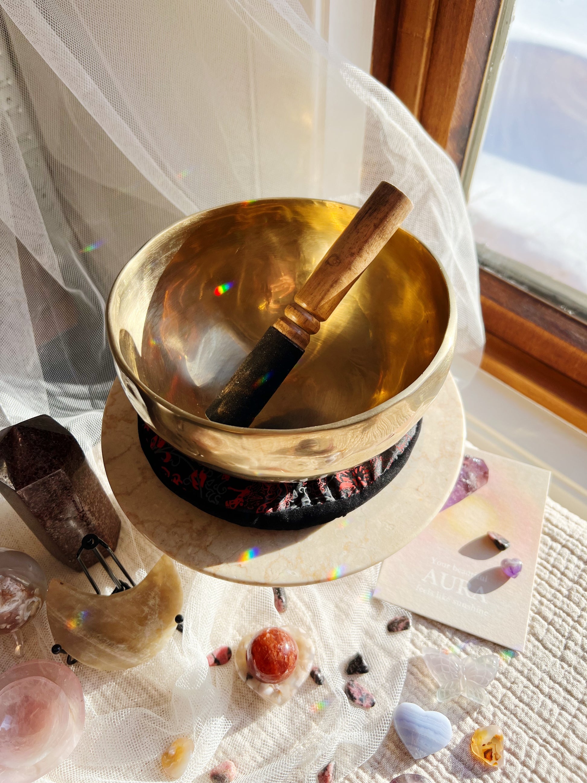 Syngebollen produserer en dyp, resonerende tone som fremmer ro og indre balanse. Ideell for meditasjonspraksis, lydhealing eller som et vakkert dekorativt element i hjemmet.