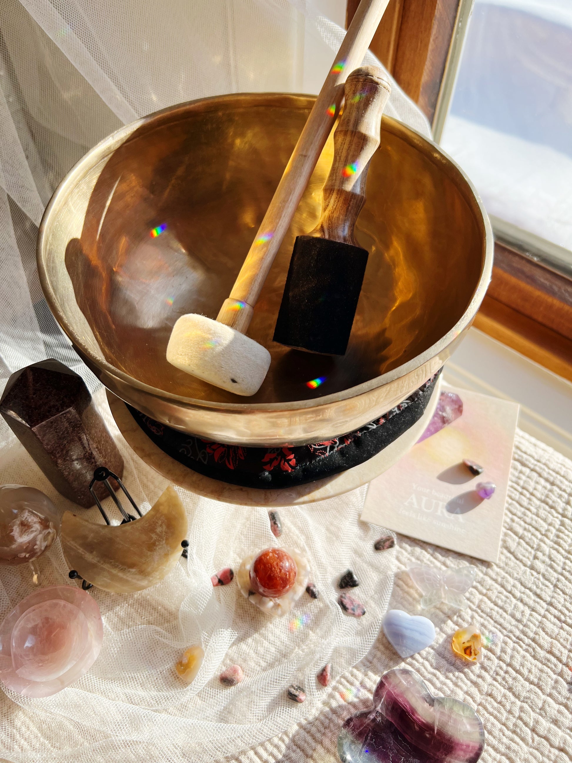 Denne større syngebollen produserer en dyp, resonerende tone med langvarig klang som fremmer ro og indre balanse. Ideell for meditasjonspraksis, lydhealing, terapeutisk bruk eller som et vakkert dekorativt element i hjemmet.