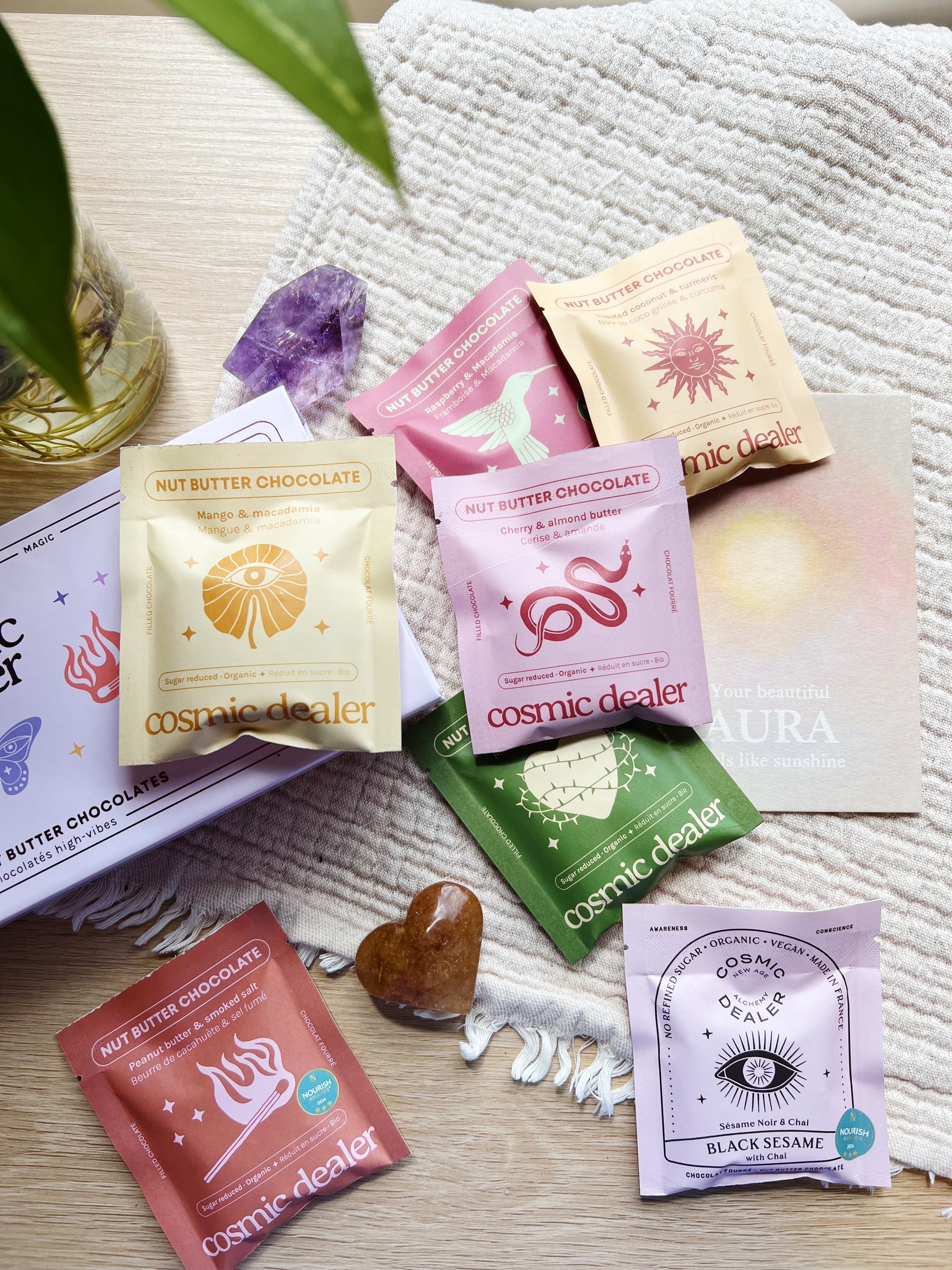 Disse sjokoladene fra Cosmic Dealer forener nøttebasert nytelse og botanisk funksjon – perfekt som en daglig treat, uten dårlig samvittighet.