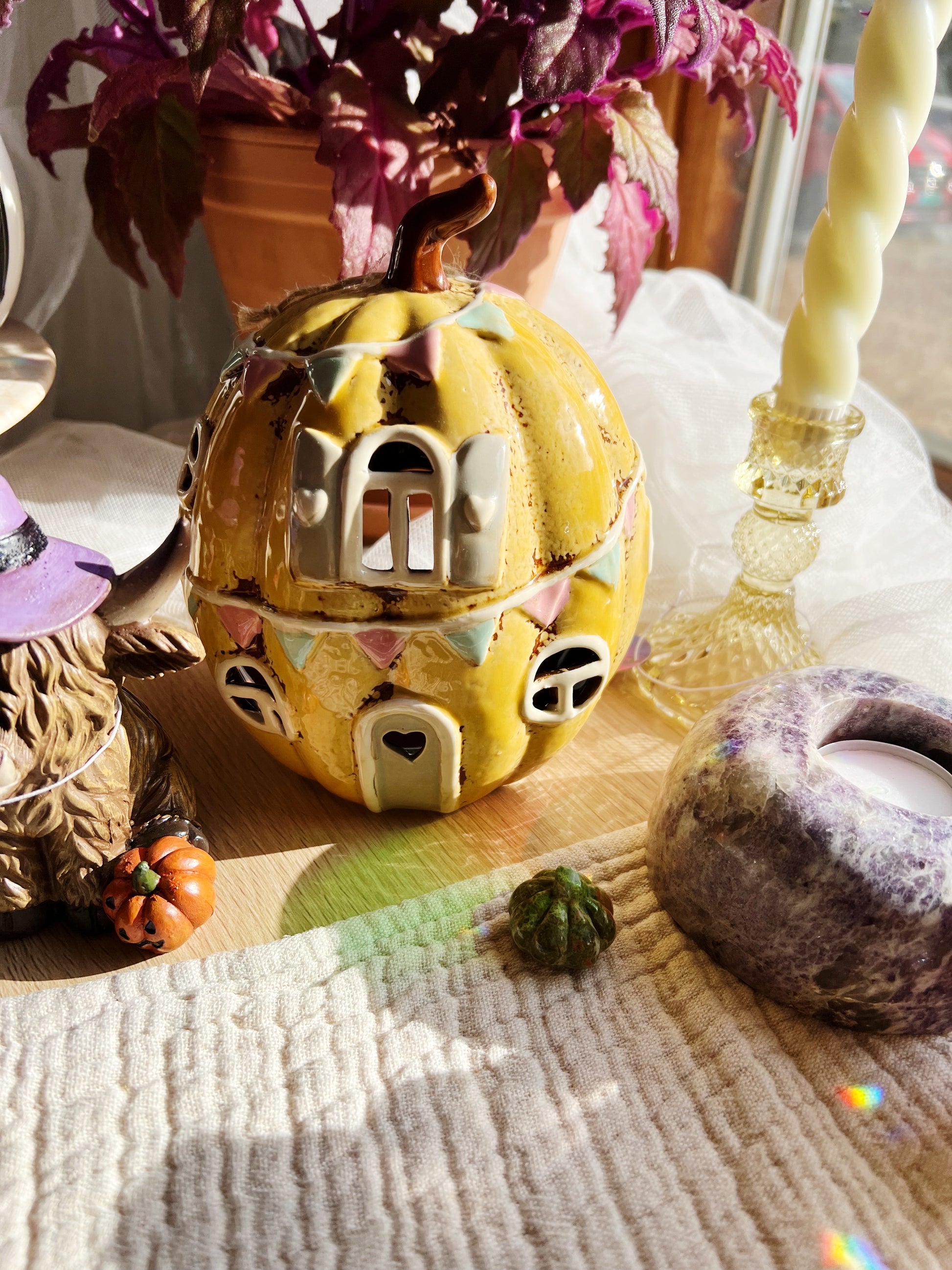 Skap en lun og innbydende atmosfĂŠre med denne vakre keramikk-lykten med gul glans. Plasser et telys inni, og la det myke, varme lyset spre seg gjennom det gulaktige glasset, som gir rommet en hyggelig glĂžd.