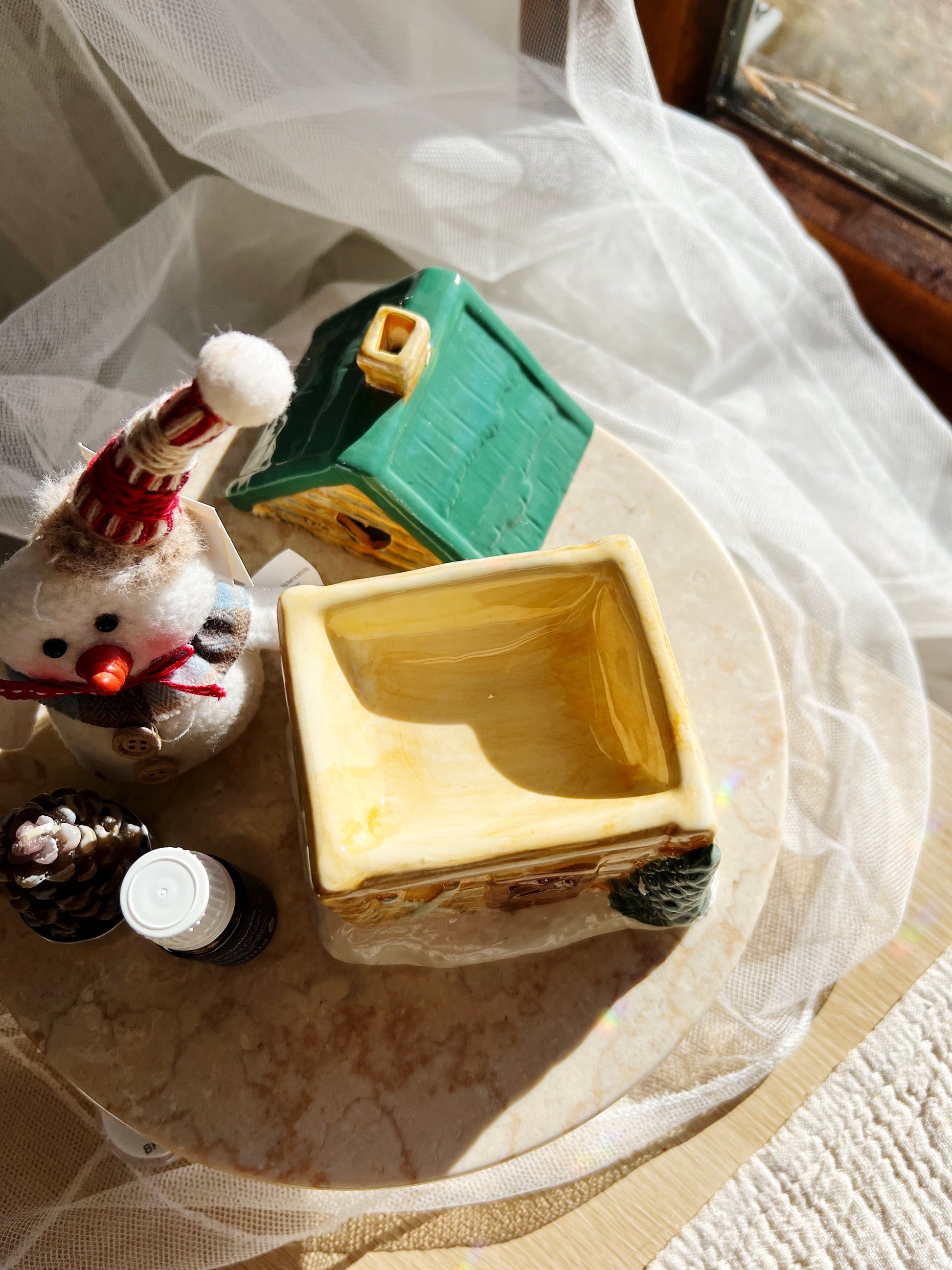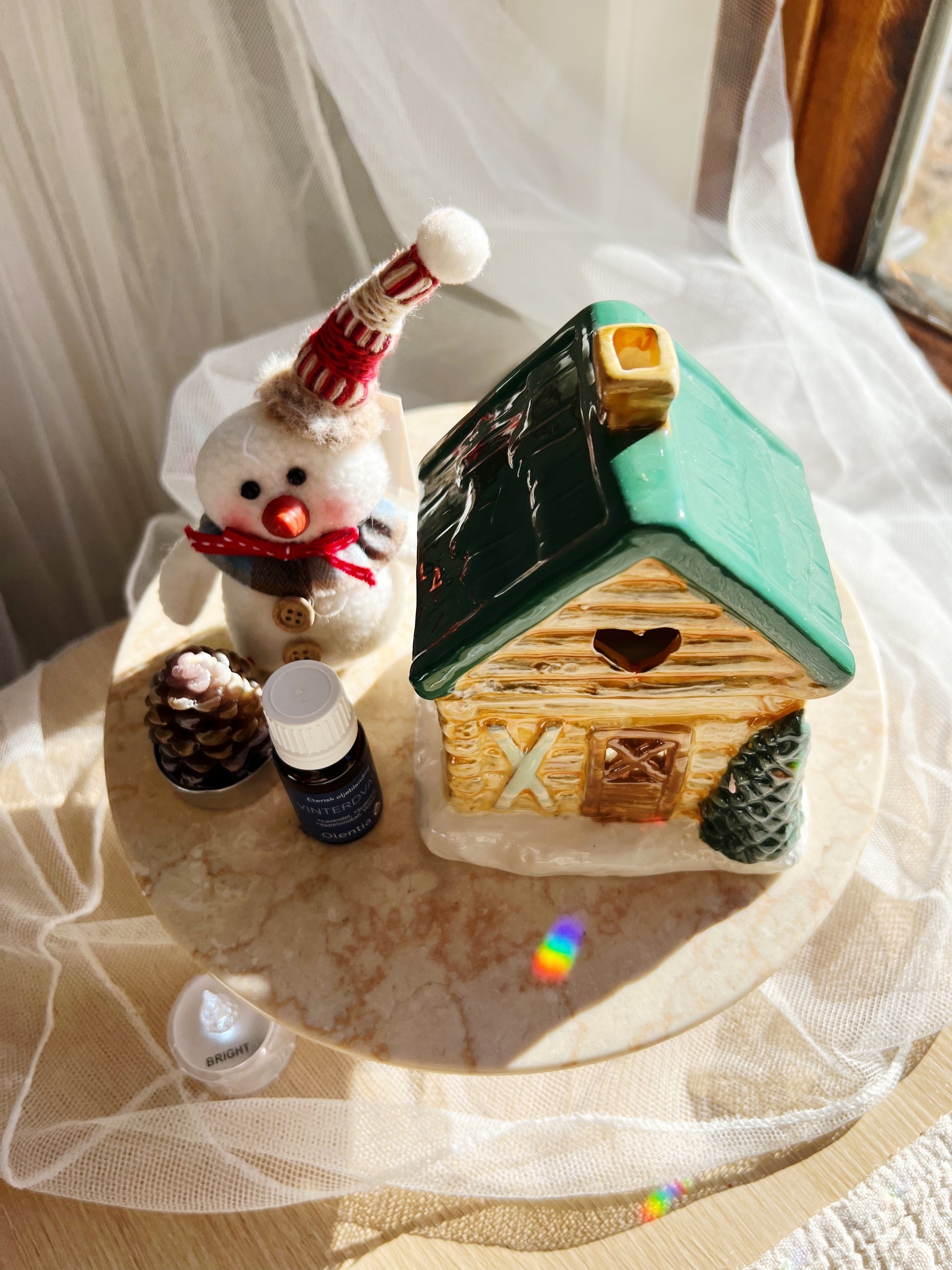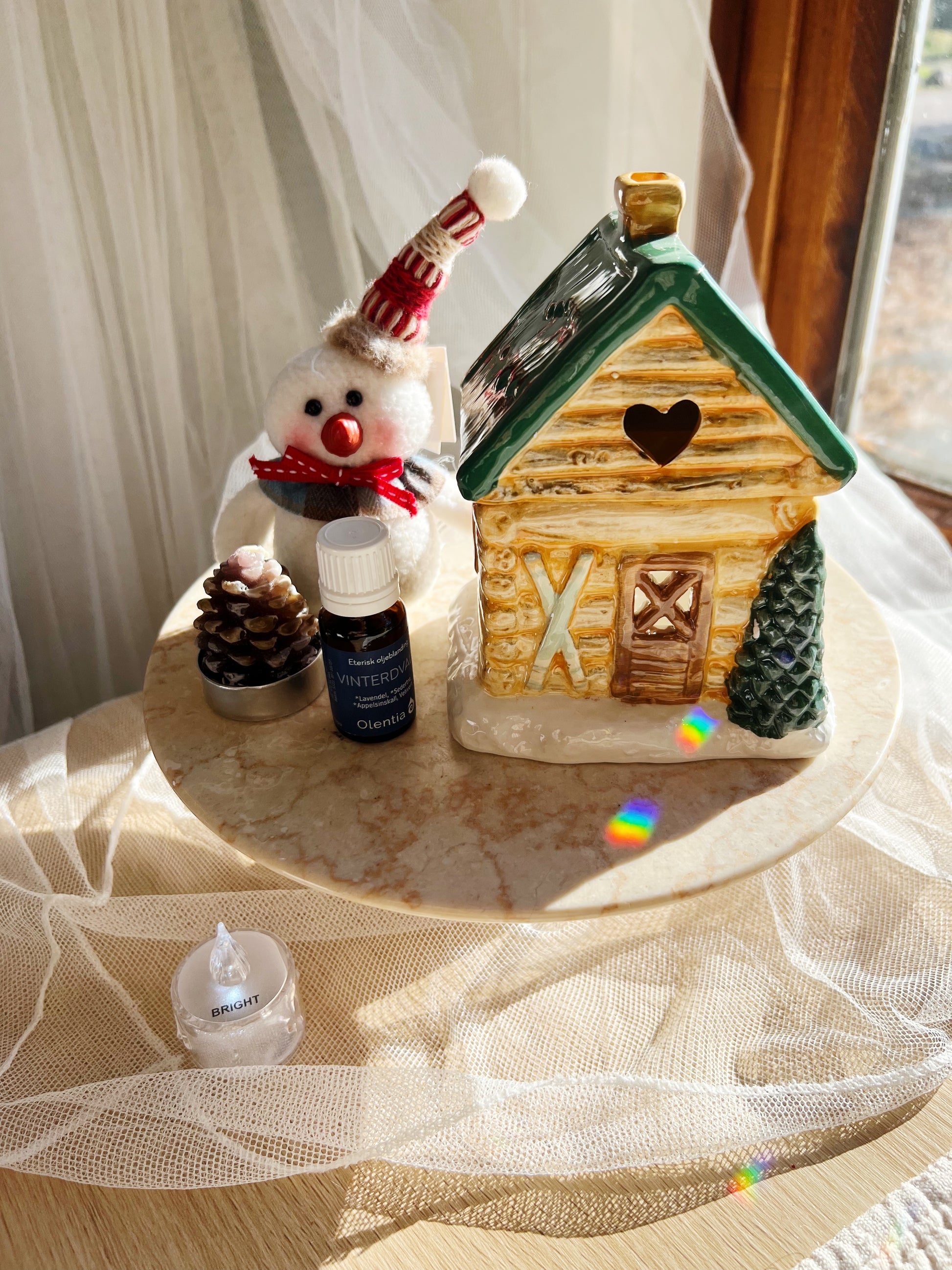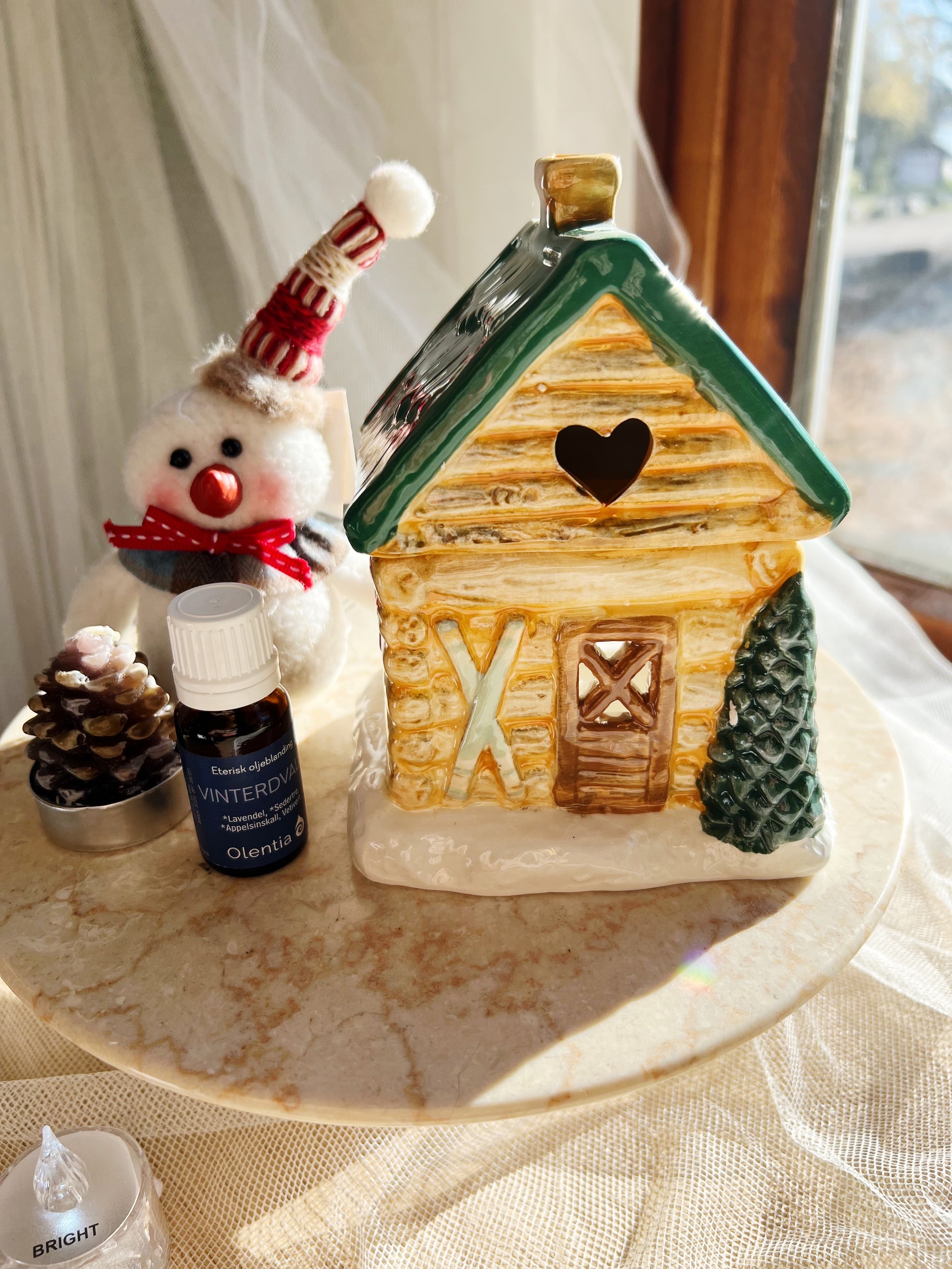 Tilsett noen dråper duftolje (fortynnet med vann), tenn et telys, og la hjemmet fylles med lune, sesongriktige aromaer. Når den ikke er i bruk, er den en dekorasjon i seg selv – som et lite stykke vintermagi på peishylla eller bordet.
