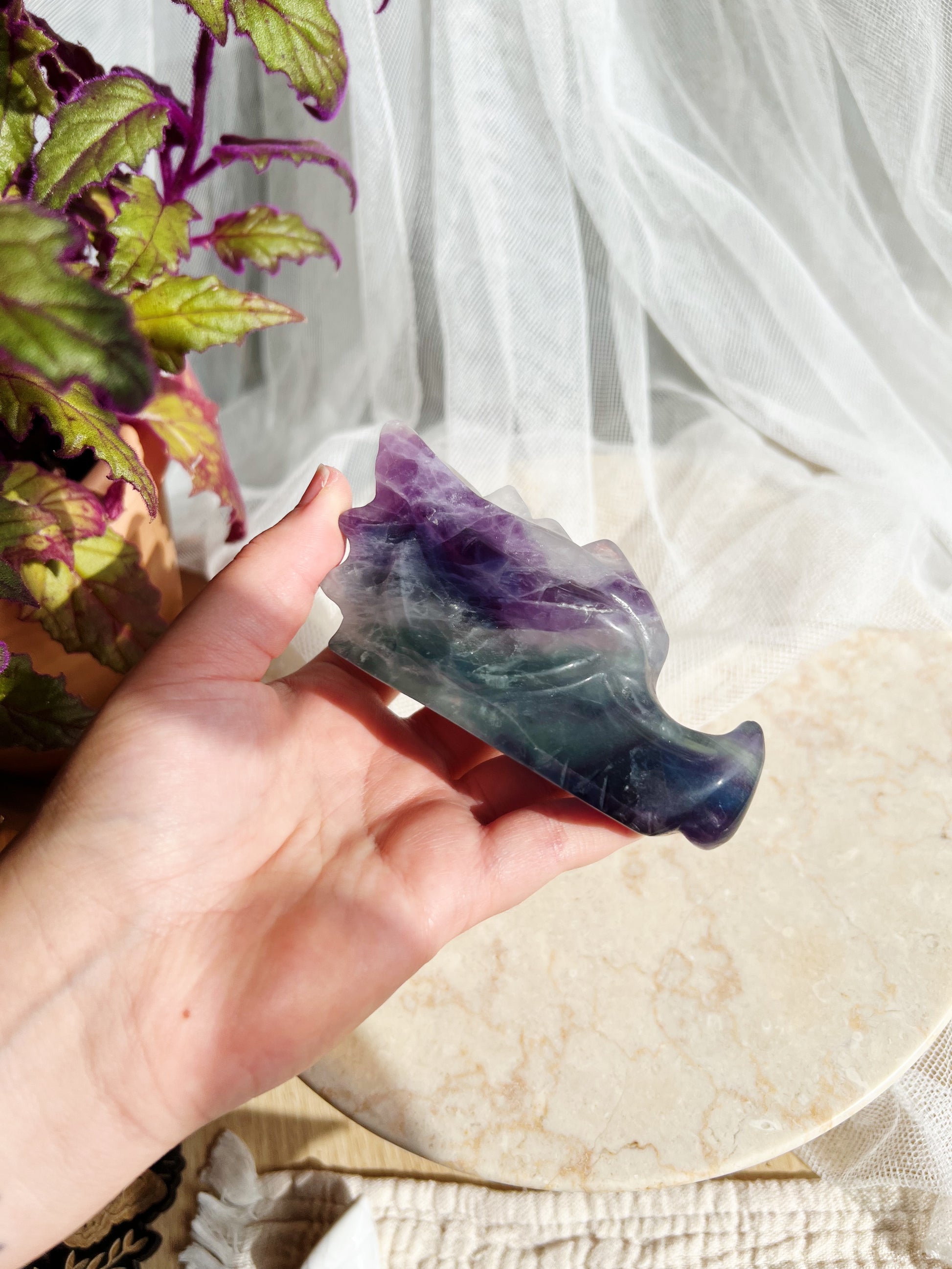 Denne drageformen symboliserer styrke, beskyttelse og visdom – og med Candy Fluoritt som materiale får du en krystall som rydder tankene dine, styrker fokuset og beskytter deg mot negativ energi. Perfekt for både spirituell utvikling og som et energisk kraftsenter i hjemmet eller på arbeidsplassen.